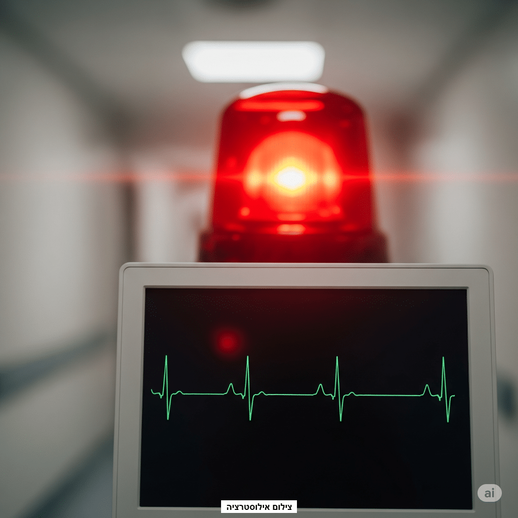 רגע של “קו ישר”: המקרה החריג שבו אזעקת צבע אדום גרמה להתמוטטות לבבית מתועדת בבית החולים הלל יפה.
